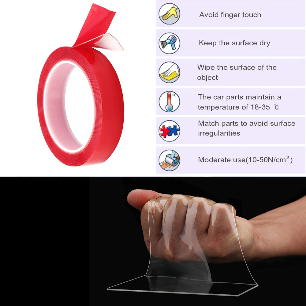 Силиконовая Двухсторонняя клейкая лента, 3 метра x 6 мм, аксессуары для интерьера автомобиля, высокопрочная Двухсторонняя клейкая наклейка, не оставляет следов
