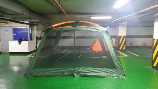 Невероятно быстрая доставка:4 дня до Челябинска! курьер принес коробку, в ней 2 спортивные сумки и отдельно пакет с металлическими трубками. видно что качественное. палатку ещё не собирали