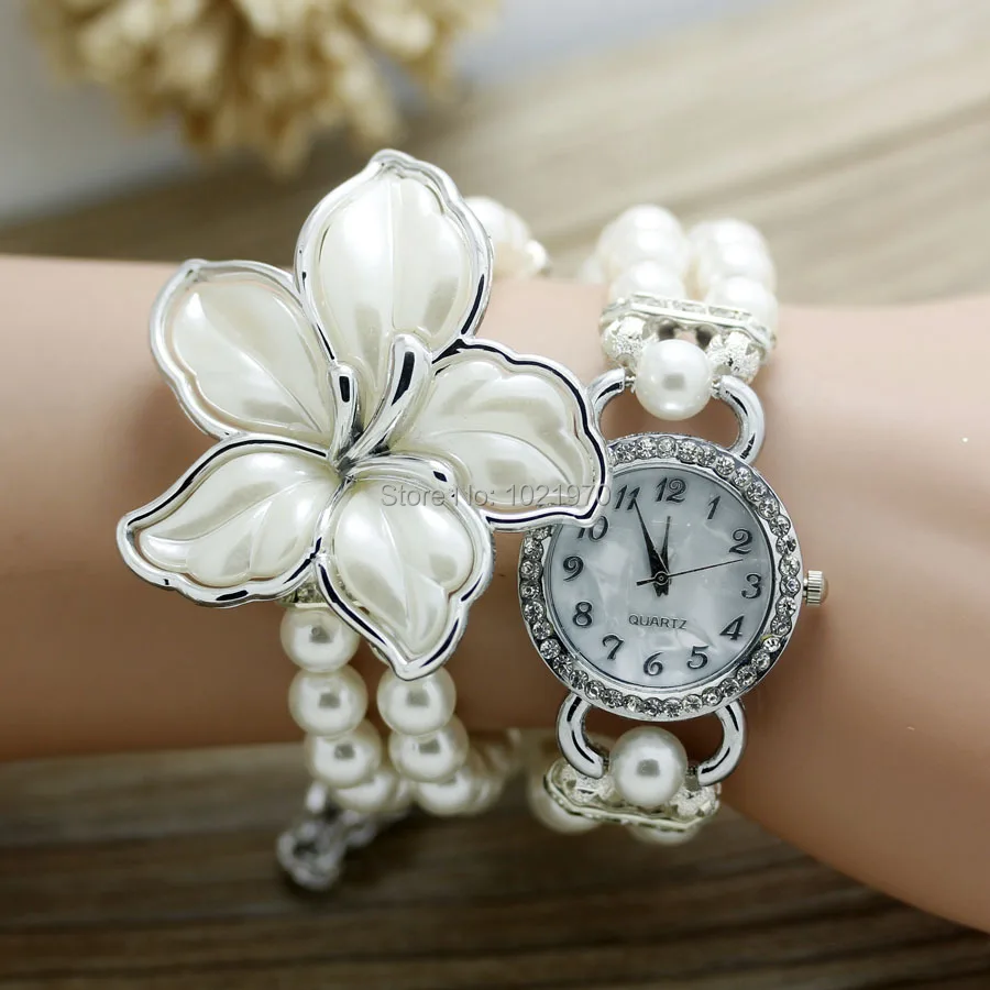 Часы shsby женские кварцевые, модные наручные часы с жемчужной цепочкой и белым цветочным браслетом, стразы