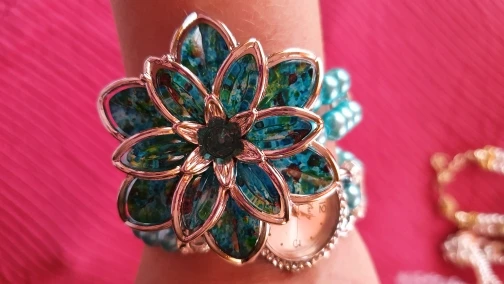 Я заказал этот дизайн абсолютно красиво! Продавец упаковал все действительно надежно. Есть регулируемый крюк-зажим, который вы можете использовать для регулировки размера, и магнитная застежка является безопасной и очень красивой. Весь дизайн довольно большой и громкий! Цветок-это легкий пластик, который не очень весит на запястье. Я использую свою вещь в качестве свадебного корсажа на запястье/типа ювелирных изделий-и она выглядит мило. Спасибо shsby fashion + +