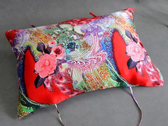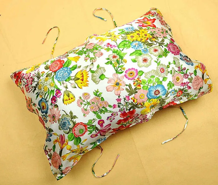 Новинка 100%, подушка из чистого шелка, подушка-полотенце, наволочка с цветочным принтом, Звездный принт, королева, Кинг, завязка на подушку, 4 линии сзади