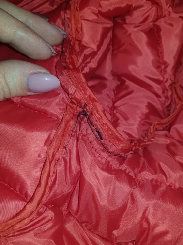 Очень плохой пошив. Внутри всё кривое. Неужели нельзя было использовать красные нитки?! На капюшоне снаружи очень видно((( Также кант на капюшоне с одной стороны с утеплителем, с другой без(( Разочарована. На рост 140 взяли максимальный размер, в самый раз. С продавцом не общалась.