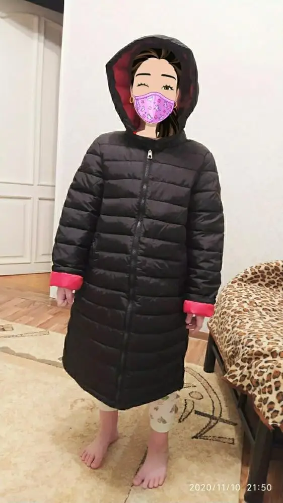 Куртка пришла в Минск за месяц. Размер на 6 лет 120 см ниже колена. Куртка тонкая, на теплую осень.