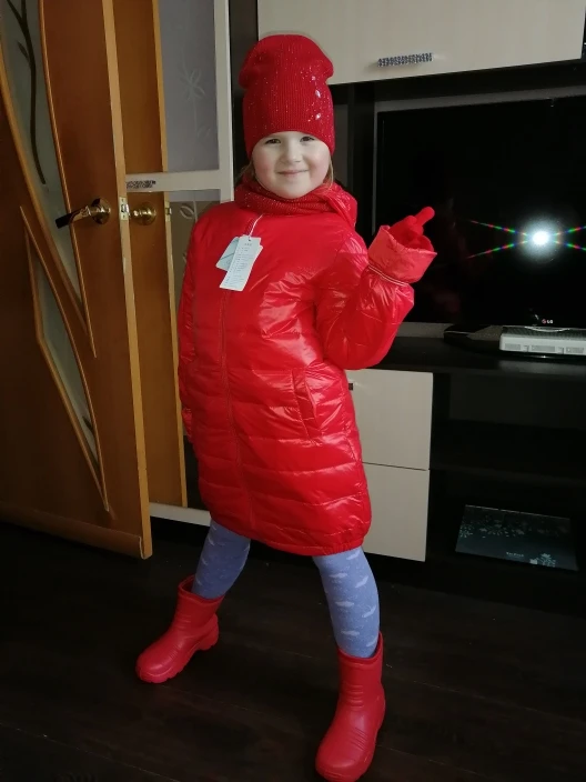 Пальто хорошенько, но очень уж тоненькое, брали куртку золото из этой серии, была намного толще, раза в 2. А так всё хорошо, на рост 110 взяли 130, немножко великовата. Думаю 120 была бы впритык.