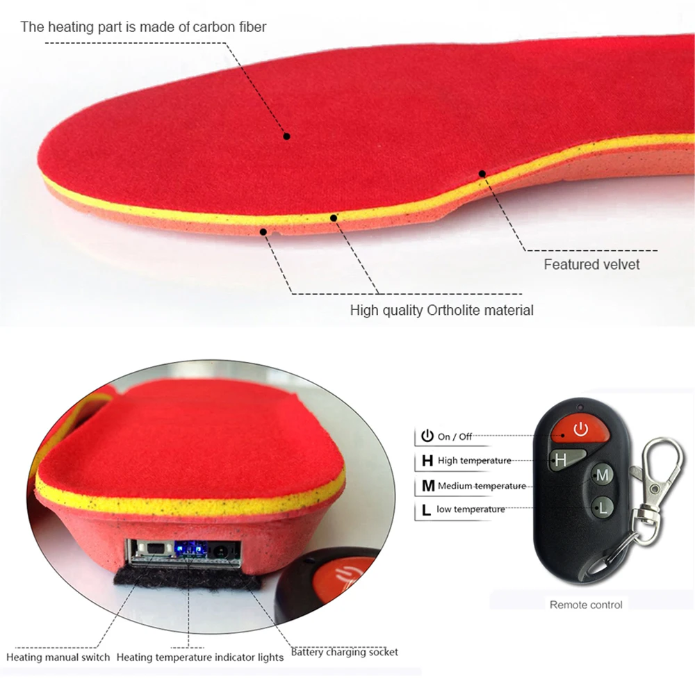 Зимние утепленные стельки для ног USB электрические перезаряжаемые подкладки для обуви с подогревом и контроллером Спорт на открытом воздухе термостельки