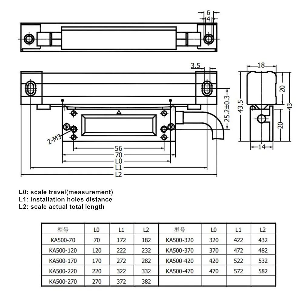 SINO KA-500 270 мм 5um тонкий DRO линейные весы KA500 0,005 мм 270 мм линейный стеклянный оптический датчик датчика линейка для мини токарного станка