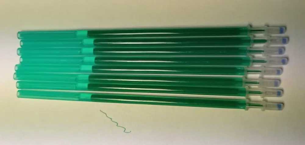 Заказ получен в течение 17 дней. Помимо ручки, резины и 10 штук в упаковке, я также заказал 20 штук свободной перезарядки (на фотографиях все появляются вместе, мы ценим то, что некоторые цвета немного более четкие, Я такого рода прошу). Они пишут идеально, все подошло идеально. Легко удаляется (есть фото до и после удаления). Продавец рекомендует!