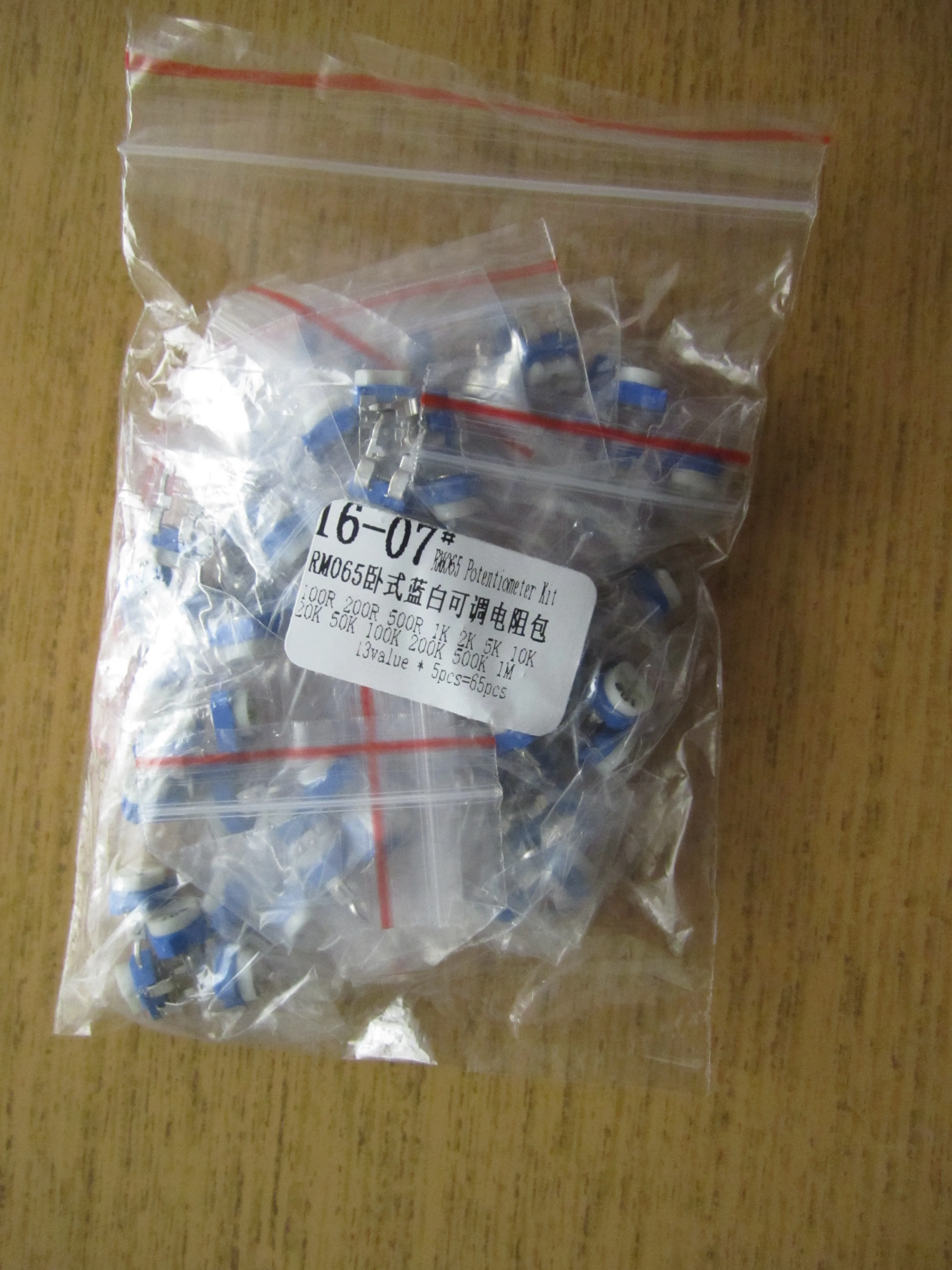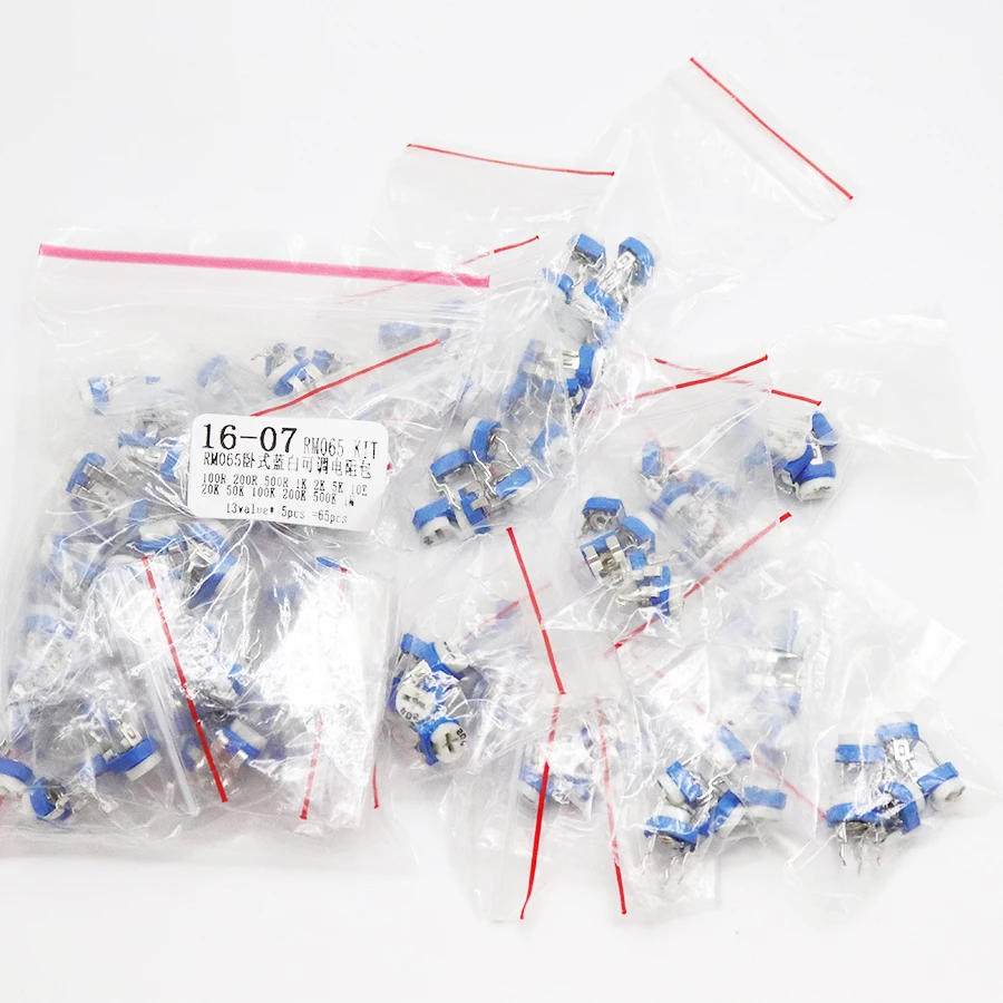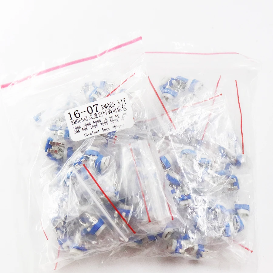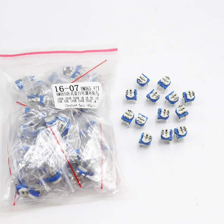 Подстроечный потенциометр RM065, верхняя Регулировка 100R-1M RM065, строительные переменные резисторы, набор в ассортименте, 13 типов * 5 шт. = комплект 65 шт.