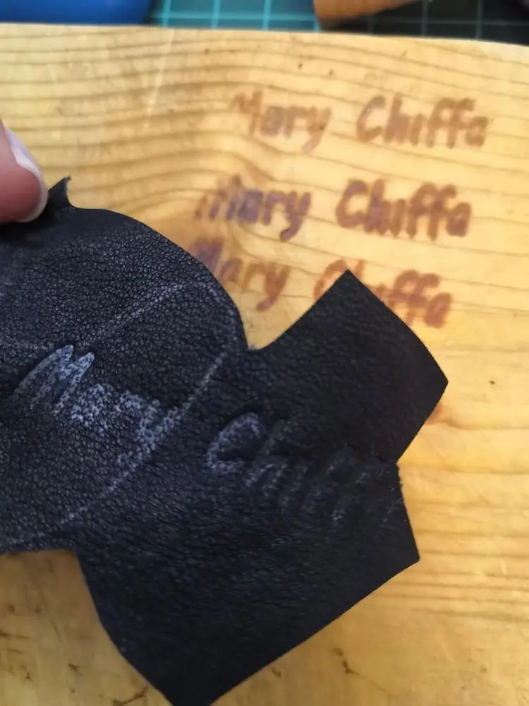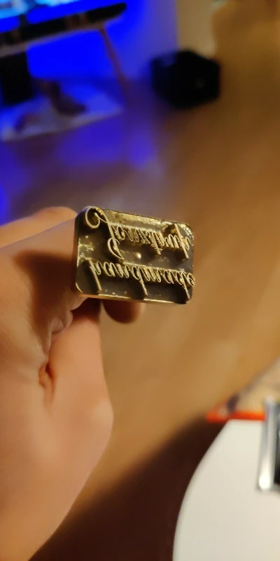 Штампик очень чёткий, все буквы и грани ровные. Продавец отвечал быстро, буквально несколько часов. Обговорили всё точно. На все переговоры, изготовление ушло три дня и штамп отправили. Очень советую, рекомендую продавца. Штамп отпечатывала маломощным паяльником (27 ватт). Паяльник взяла у мужа, специально не покупала