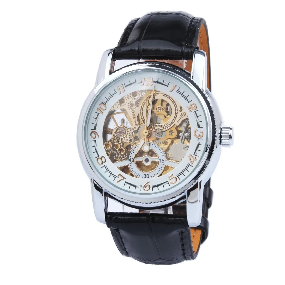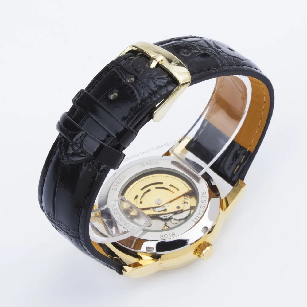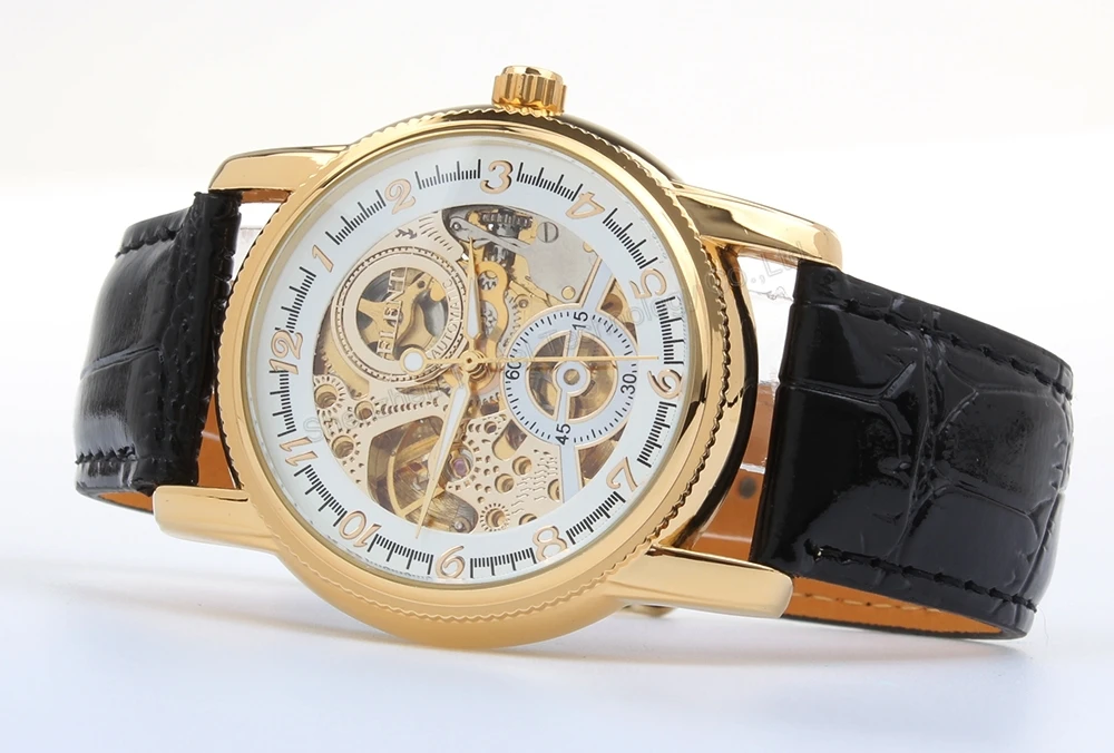 Часы FLENT мужские автоматические с автоподзаводом, наручные часы, золотые и серебряные часы-скелетоны, часы с кожаным ремешком и гравировкой