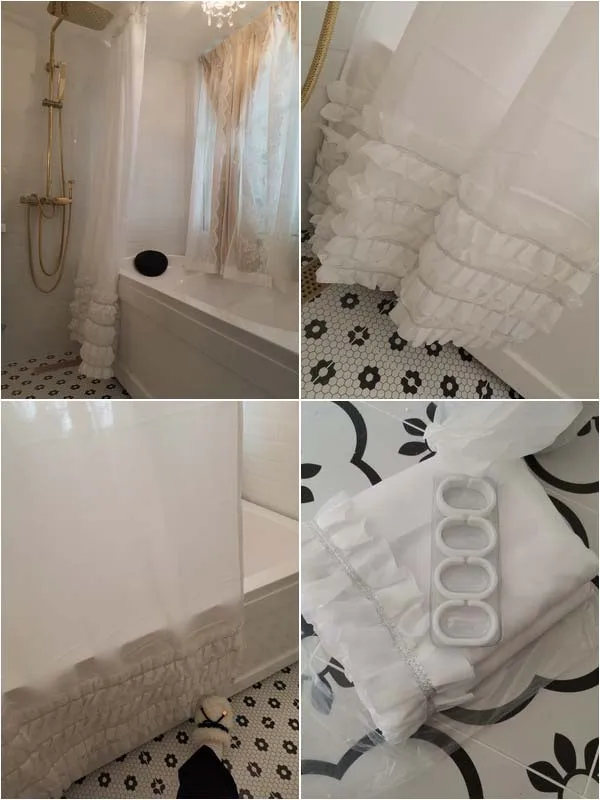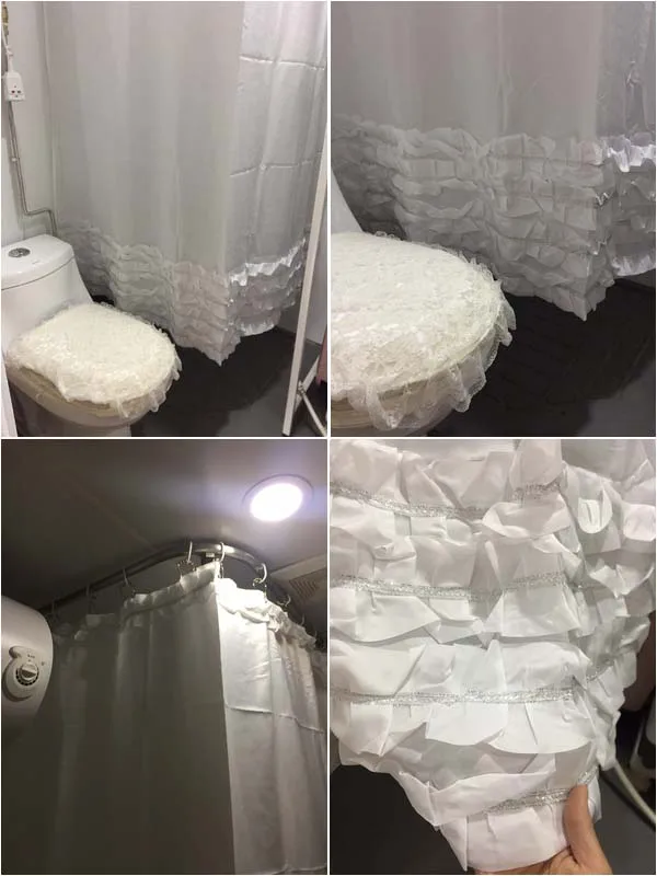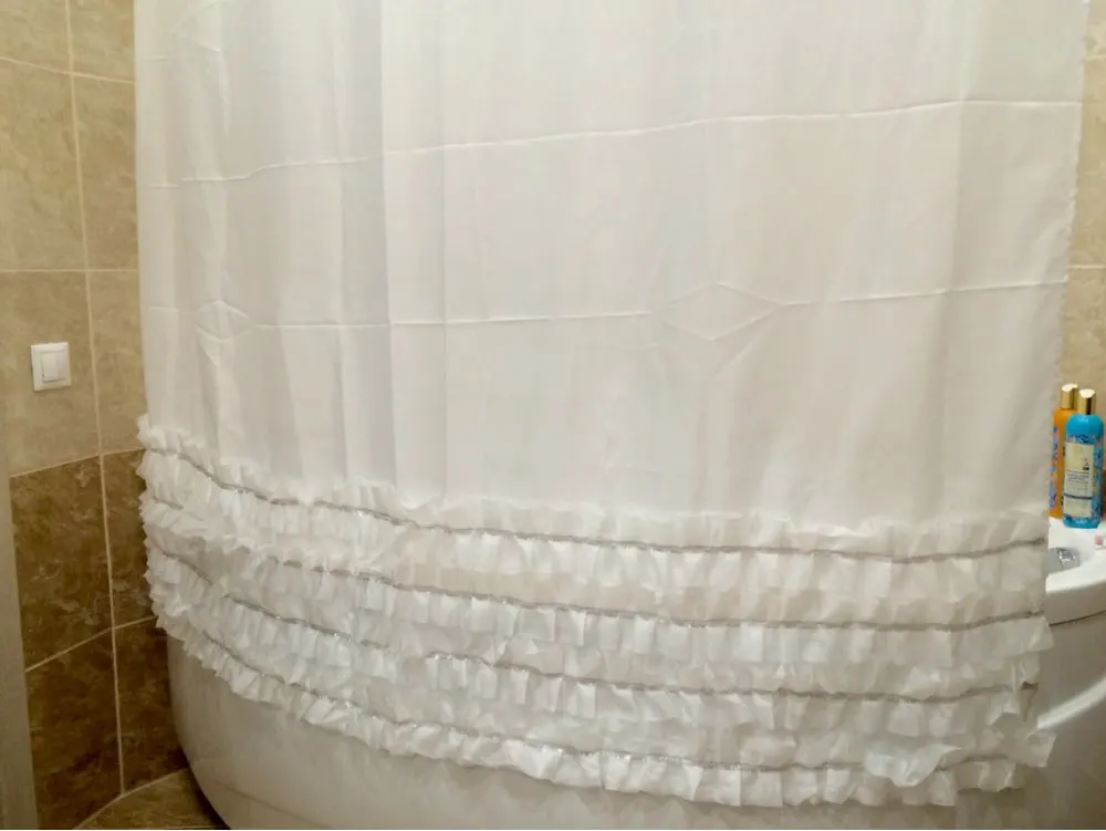 Занавеска для душа из полиэстера, белая, с рюшами, 12 крючков, 180 см * 180 см