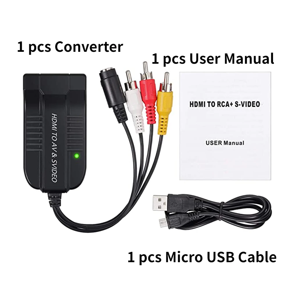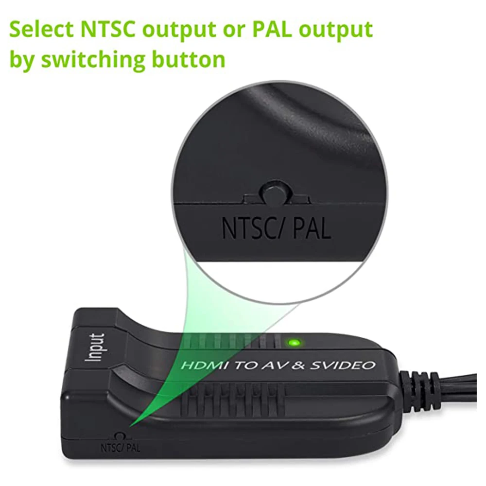 HDMI-Male AV конвертер:Можно преобразовать HDMI видео или аудио сигнал в мужской CVBS композитный видео сигнал + Женский S-VIDEO сигнал и FL/FR стерео аудио сигналы, в то же время Поддержка DVI системы Sideline сигналы, быть совместимыми с ТВ, видеомагнитофон VHS, записывающие устройства DVD и многое другое.
