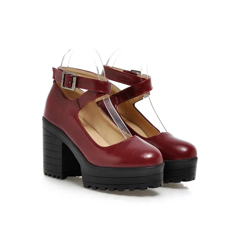 Женские туфли-лодочки в стиле панк PXELENA, черные и белые туфли на массивном блочном высоком каблуке, платформе, с ремешком на щиколотке и пряжкой, осень 2017