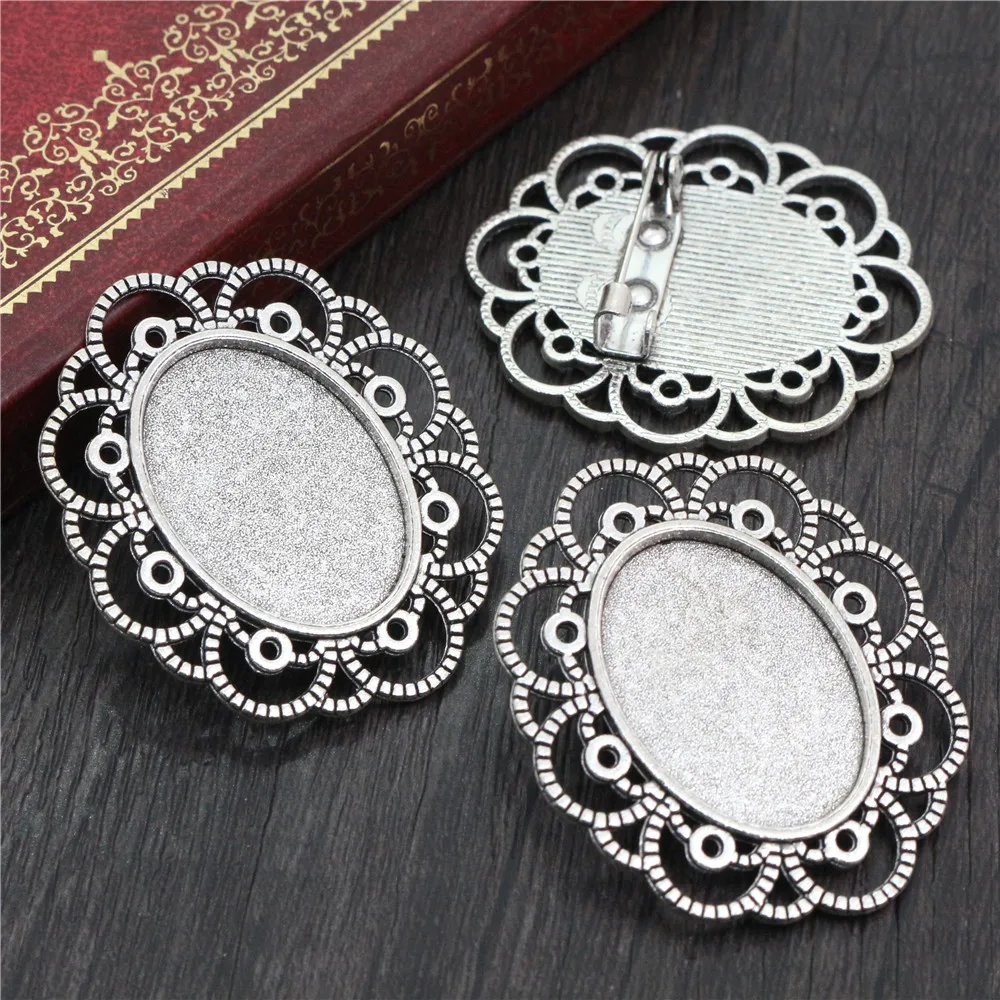 5 шт. 18x25 мм Внутренний размер Античная Посеребренная черная бронзовая брошь булавка цветок камея кабошон основа установка