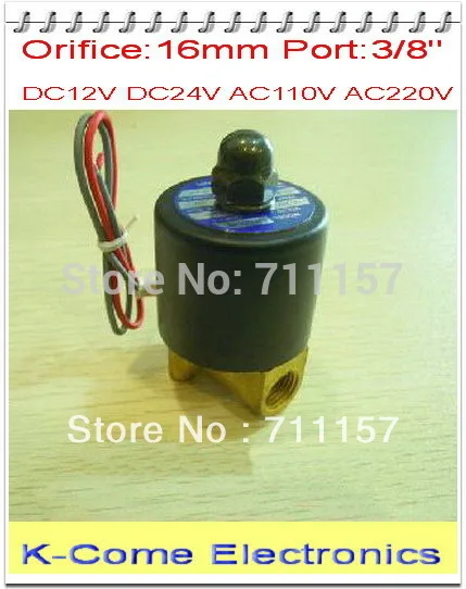 Отверстие 16 мм порт 3/8 "соленоидный водяной клапан 12 в N/C Электрический Соленоидный клапан воздушный Воздушный Пневматический регулирующий клапан
