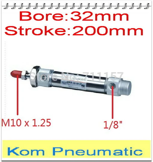 MA 32-200 Пневматический воздушный цилиндр из нержавеющей стали, диаметр 32 мм ход 200 мм порт 1/8 дюйма, ma32x200мм, с магнитной
