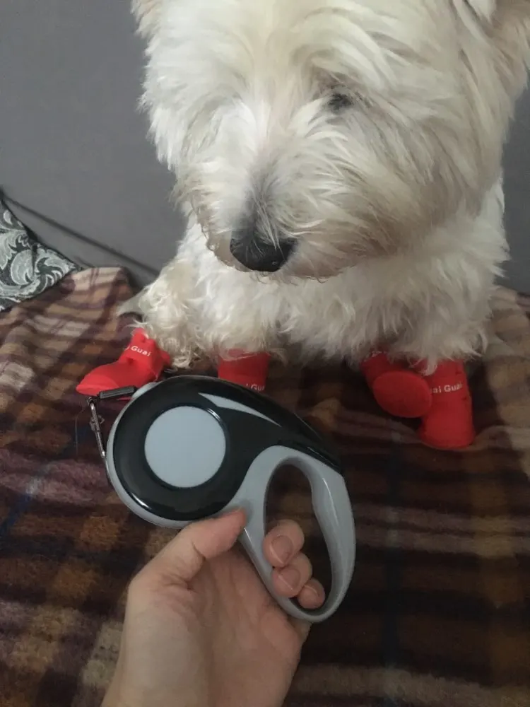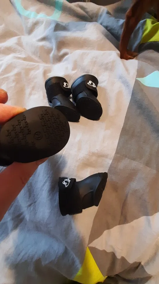 Хороший материал, но неправильная резка. Моя собака не может ходить с этими ботинками. Мне пришлось пробовать много раз, пока не нашли хорошее положение, чтобы ходить 5 минут под дождем. После 5 минут больше не могу ходить. Моя собака носила сапоги уже 5 лет, но не с этим .. Извините!