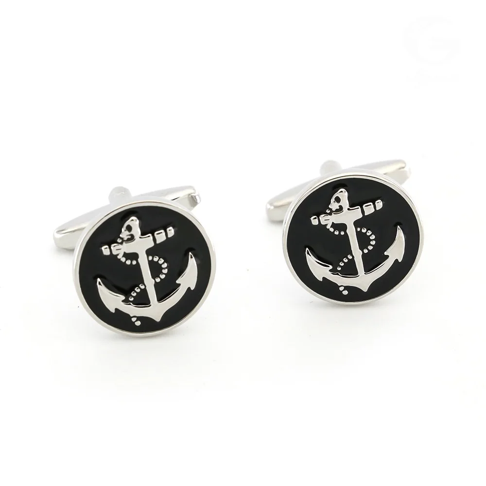 Мужские Запонки с винтажным якорем, медный материал, черный цвет