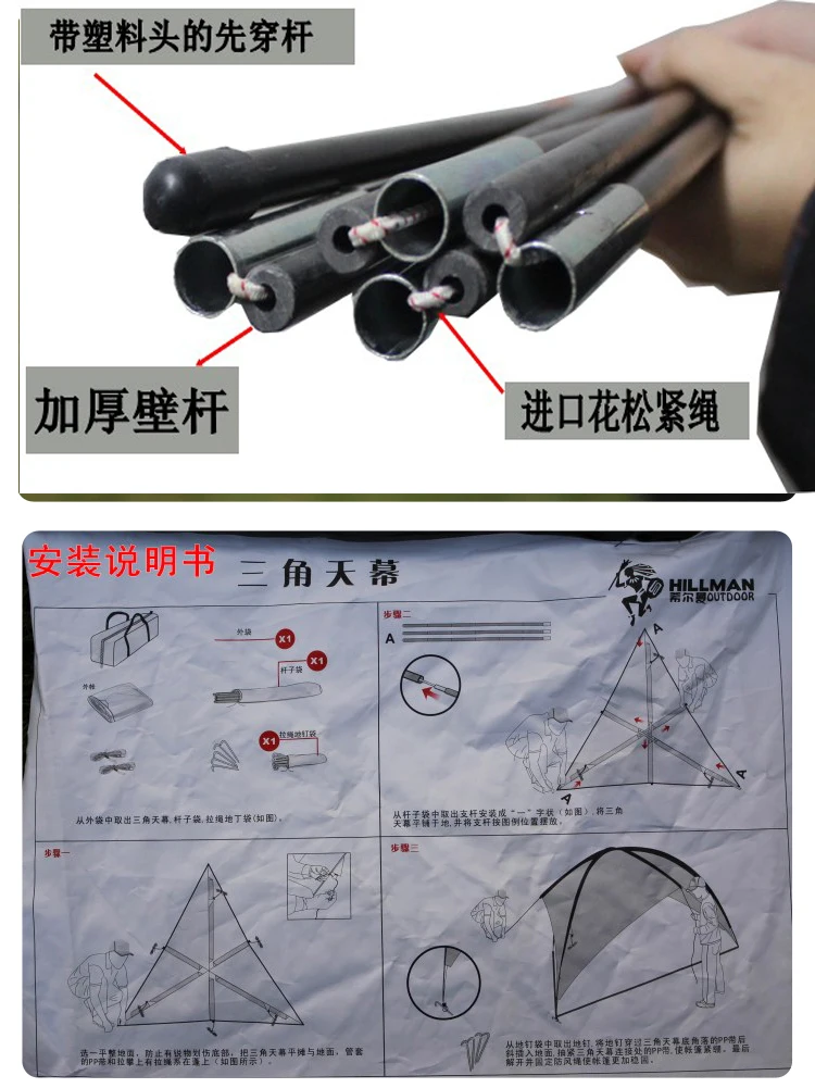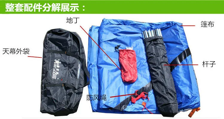Материал: 210T антиразрывная полиэфирная ткань (УФ) (гидростатическое давление 5000 мм)Кронштейн: стержень из стекловолокна диаметром 11 ммРазмер: 480*480*480 см (угол три стороны) * 200 см высотаДругие аксессуары: оригинальные колышки * 12, 2,5 м ветровая веревка * 9.Цвет: темно-зеленый/Травяной Зеленый/серебристо-серый/синийВес: 5,8 КгРазмер обвала: 65*17*17 смОписание: Расширьте пространство, подходит для семейного отдыха, путешествий, друзей, кемпинга, барбекю, Маджонга на открытом воздухе, поездок на автомобиле и других целей.
