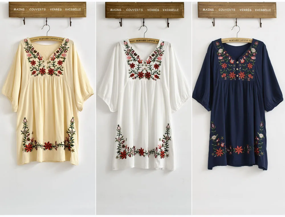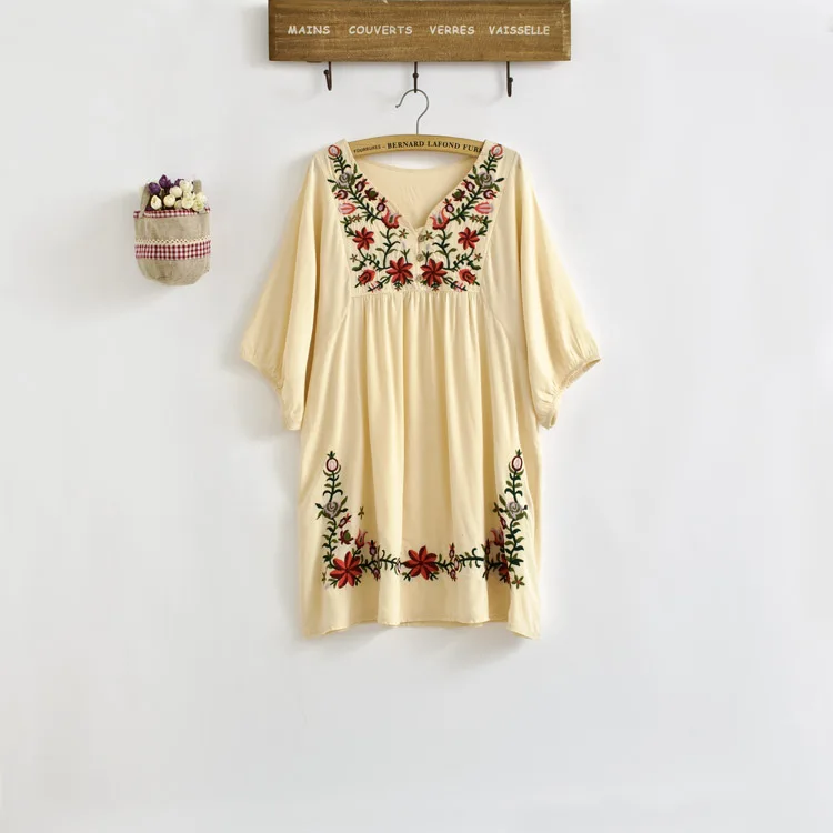 Новинка, хит продаж, винтажная, 70s, мексиканская, этническая, Цветочная вышивка, хиппи, блузка, платье, женская одежда, vestidos, S, M, L, размера плюс