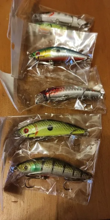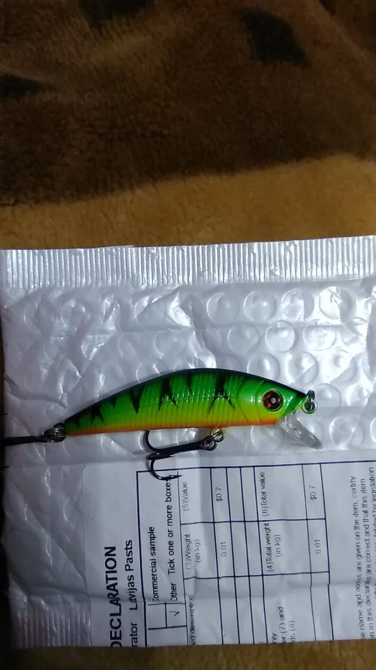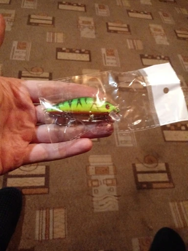 пришло быстро в сборной посылке за 10 дней до татарстана. сделано хорошо. крючки острые. шумящие и медленно тонущие в воде.весят почти 8 грамм. взял их потому что друг который раньше его взял ловил на них щуку и окуня . брало на цвет M26C. Другого цвета у него не было. на 5 фото следы на воблере от рыбы как на него она берет. сам пока не ловил на него. на следующий год теперь только опробую.