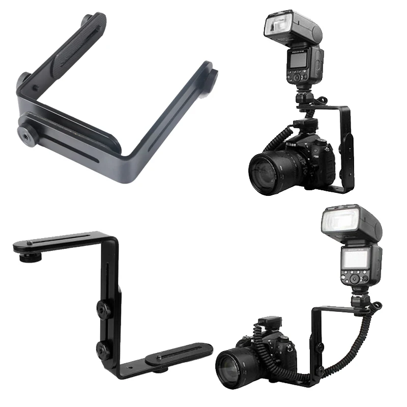 Универсальный Металлический Двойной L-образный кронштейн держатель для Canon Nikon DSLR вспышка для камеры светодиодный светильник с 14 винтовыми отверстиями