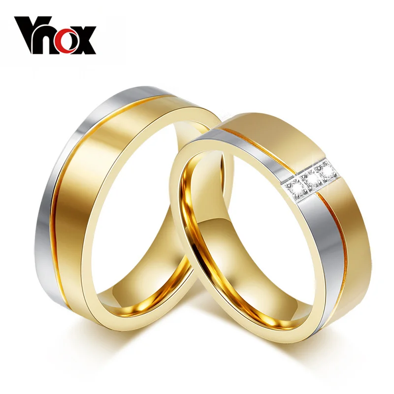 Vnox Свадебные Кольца для Для женщинДля мужчин золото-цвет элегантн...