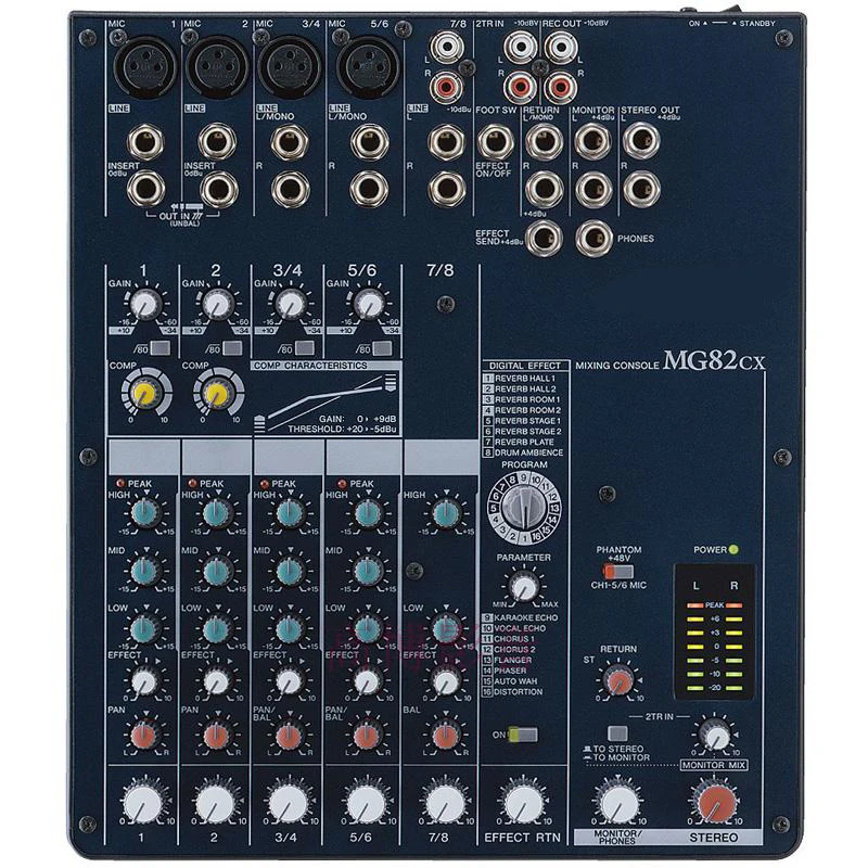 MG82CXОсновные функции и особенности:8 входных каналов, 4 микрофонных входа, 4 стерео линейных входа1, 1-4 канал расположен в трех секциях, 7/8-9/10-11/12 канал расположен в двух секциях.2, 4 шины (стерео + 2, отправьте 1 вспомогательную сортировку), стерео эхо3. Первый 4-канальный микрофон со встроенным компрессором, все каналы являются фильтром высоких частот,4, высокоточная Трехцветная Колонка уровня точности, точный выходной уровень дисплея5, высокое качество + 48 В фантомное питание6, встроенное устройство цифровых эффектов DSP; Корпус прочный и легкий, может быть установлен на стойку.7, внешний источник питания с шумоподавлением, простой в использовании и гибкийТехнические параметры:Общее гармоническое искажение: менее 0.1% (THD + N)Частотная характеристика: (20 Гц-20 кГц) /-3 дБ + 1 дБКанал в бесшумном состоянии: > 93 дБВыходная мощность наушников: 75 МВт (1 кГц, THD = 0.5%, 100)Перекрестные помехи: -70 дБФильтр высоких частот Mono / stereo: 12 дБ 80 ГцЭквалайзер:Низкий: 60 Гц + 15 дБ250 Гц ~ 5 кГц + 15 дБВысокая: 12 кГц + 15 дБВходное и Выходное сопротивление:Вход для микрофона: 3KОдин вход: 10KСтереовход: 10KВыходное сопротивление: 150 Ом
