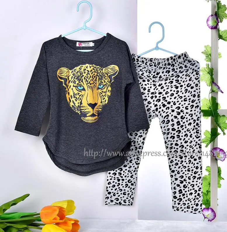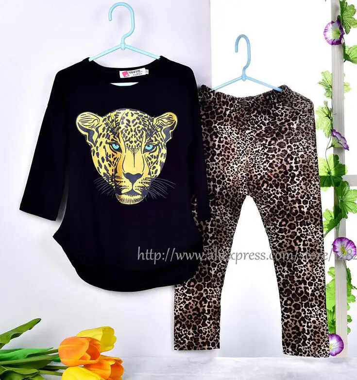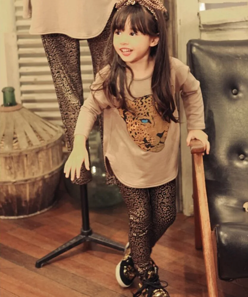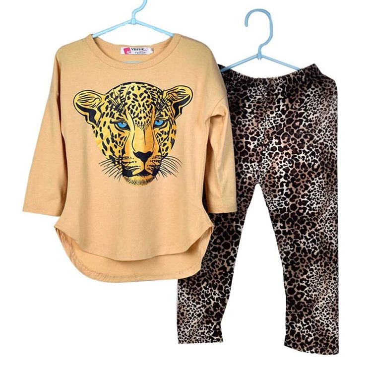 Комплект одежды для девочек из 2 предметов, рубашка с длинным рукавом и штаны, Леопардовый принт, осень