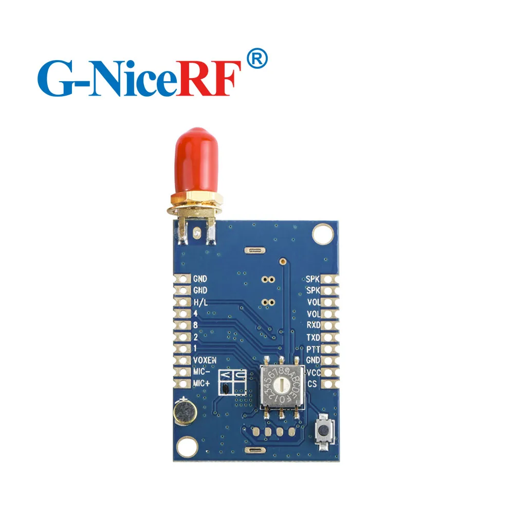 Поворотный переключательДля выбора каналов, EEPROM, аудио усилитель, RF усилитель, ключ PTT, гнездо антенны включены в такой маленький размер модуля. Кроме того, все параметры (CTCSS, CDCSS, SQ, предварительно определенные каналы и т. Д.) могут быть легко изменены либо по ПК, либо командой с использованием интерфейса UART. Со встроенным токарным контуром звука пользователь может припаять переменный резистор на Pin16, Pin17, чтобы регулировать громкость бесступенчато.
