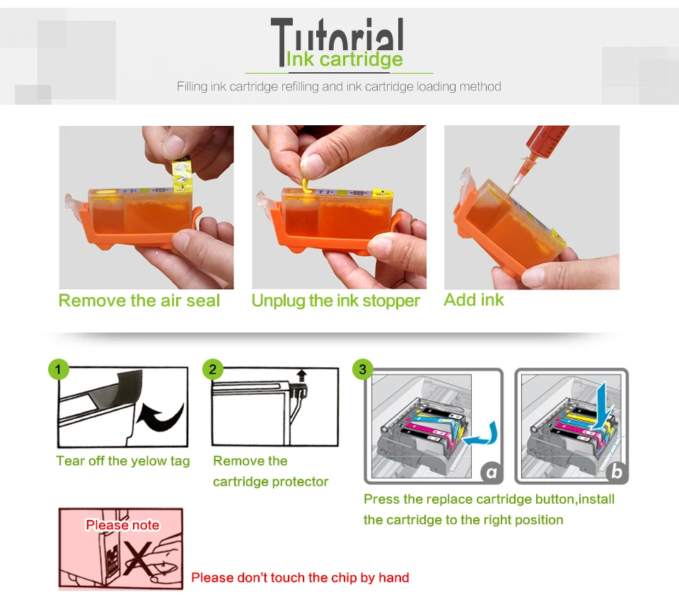4. Картриджи многоразового использования, вы можете повторно заправлять чернила в катриджеты после окончания чернил, и затем он может работать снова.