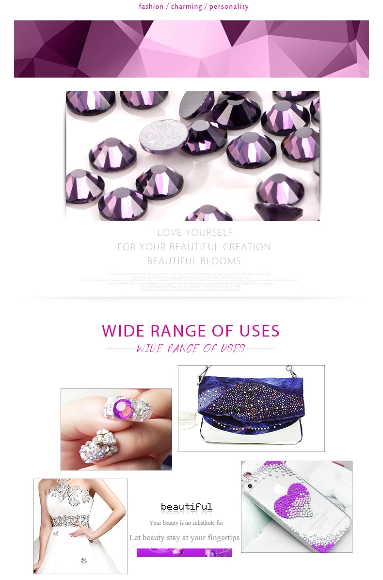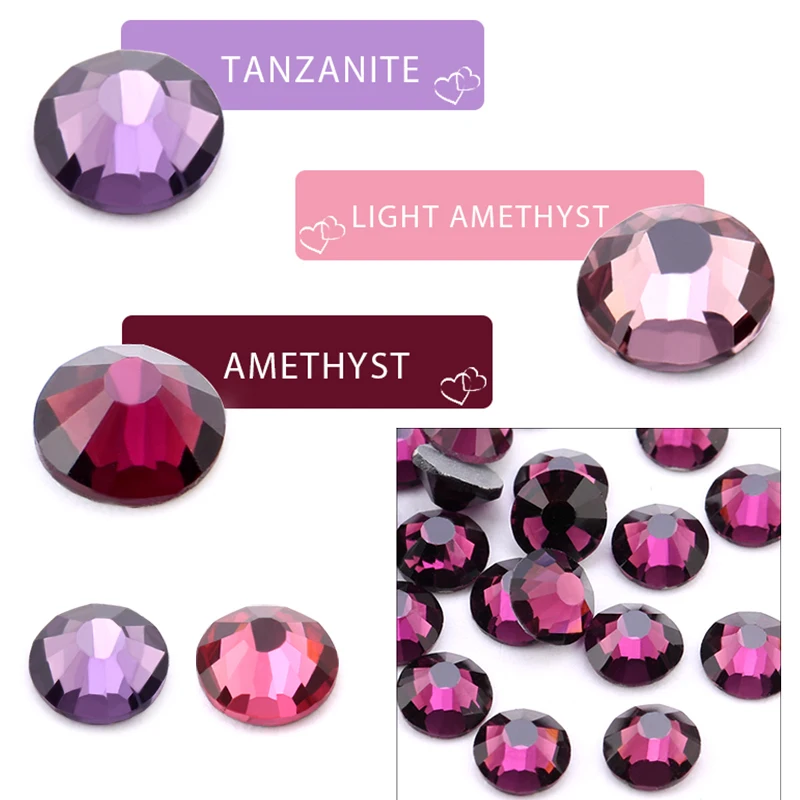 SS4-SS34 Аметистовые Стразы для нейл-арта, плоская задняя часть, без исправлений, клей для стразы для нейл-арта, бутика и высшего класса