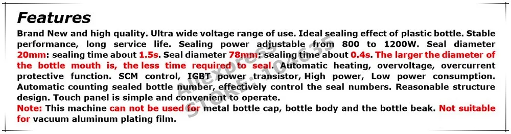 Легкая Рабочая панель, машина имеет две кнопки регулировки мощности, чтобы свободно регулировать увеличение или Redcue мощность в соответствии с различными бутылками, легко работать. Защита от перегрева более безопасна.