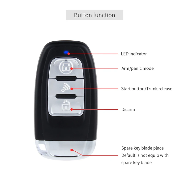 Это интеллектуальная автомобильная сигнализация ec002-lb типа PKE (пассивный вход без ключа) с кнопкой дистанционного запуска двигателя, сенсорной клавиатурой для ввода пароля и автоматическим выходом для закрытия окон.