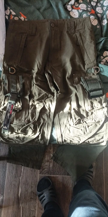 На мой рост 180 см оказались немного короткими, на левом бедре несколько маленьких карманов совершенно бесполезных, т.к. кроме флешек ничего в них не вмещается.