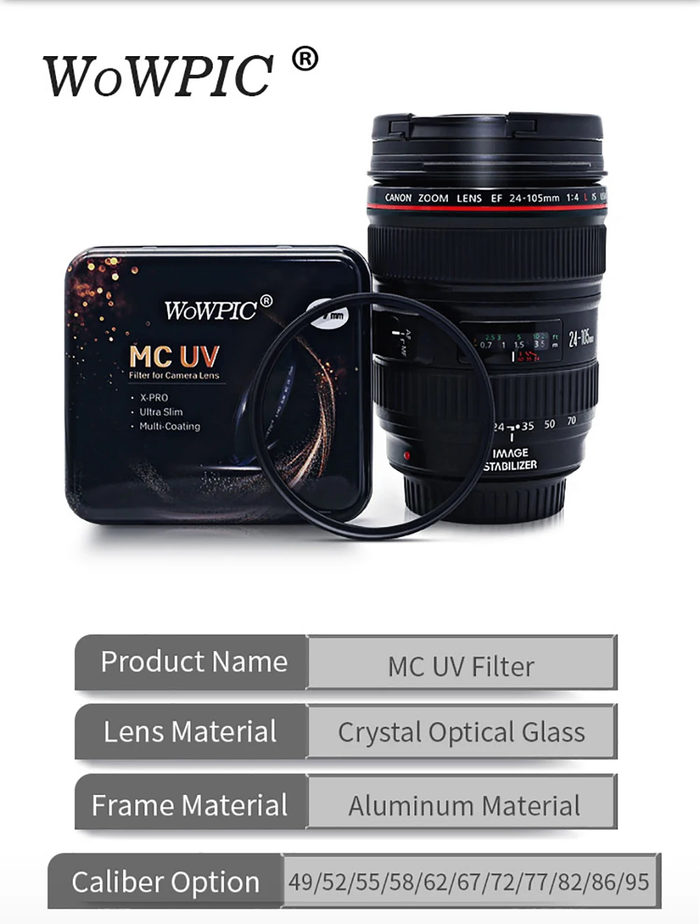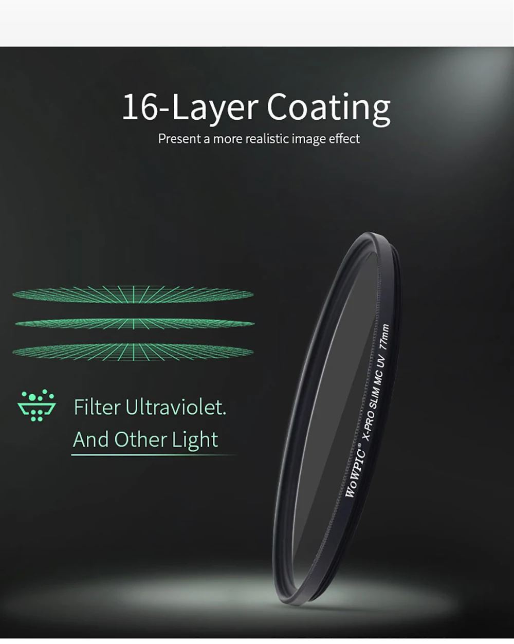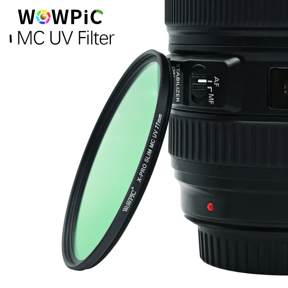 WOWPIC MC УФ-фильтр 49 52 55 мм 58 мм 62 мм 67 72 77 82 мм супер тонкий зеленый Muticoating 16 слоев защитное устройство для объектива для цифровой зеркальной камеры Canon Nikon Камера icon star icon star icon star icon star icon star