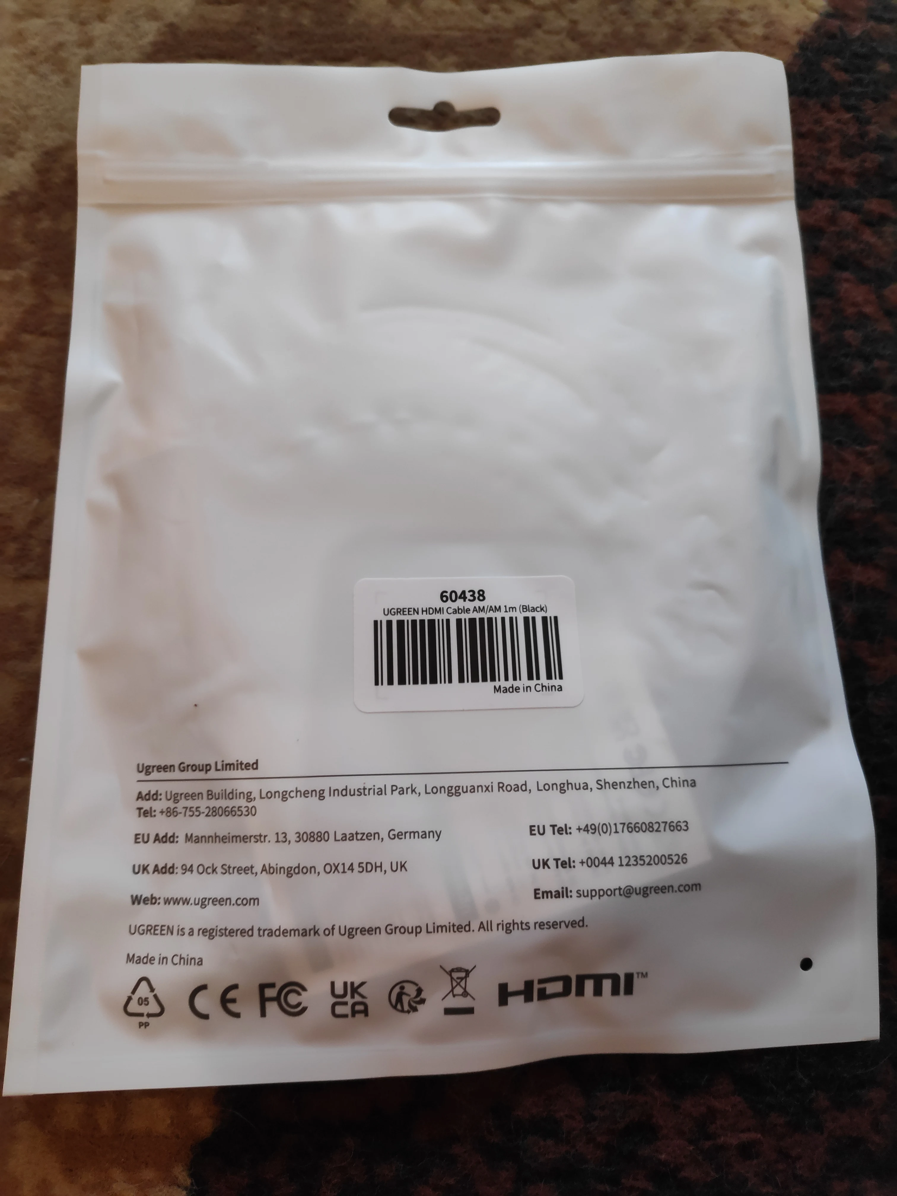 До Днепра посылка долго добиралась 30 дней, очень долго зависла при передачи импорта в страну назначения, обычно такие посылки доставляют за 14 дней, главное, что пакет целый без повреждений и потертостей. У этого продавца заказываю уже второй раз, так что его однозначно рекомендую, молодец, быстро отправил посылку. Сравнил старый родной кабель от TV box с новым, разница как в толщине, так в в жесткости кабеля в пользу UGREEN HDMI Cable.