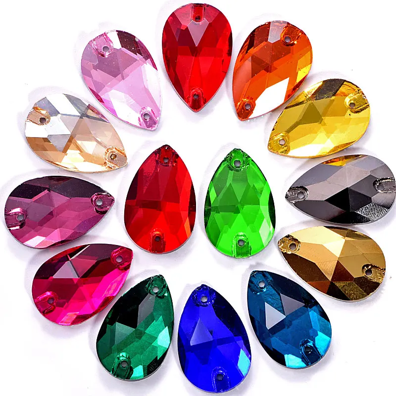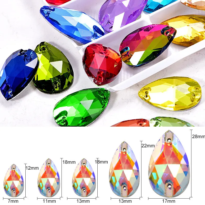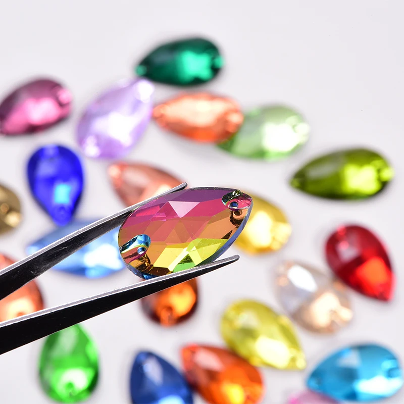 Стеклянные стразы, 7 размеров, разноцветные каплевидные, разные цвета, пришивные стразы, стеклянные камни, пришивные стразы, свадебное платье B1275