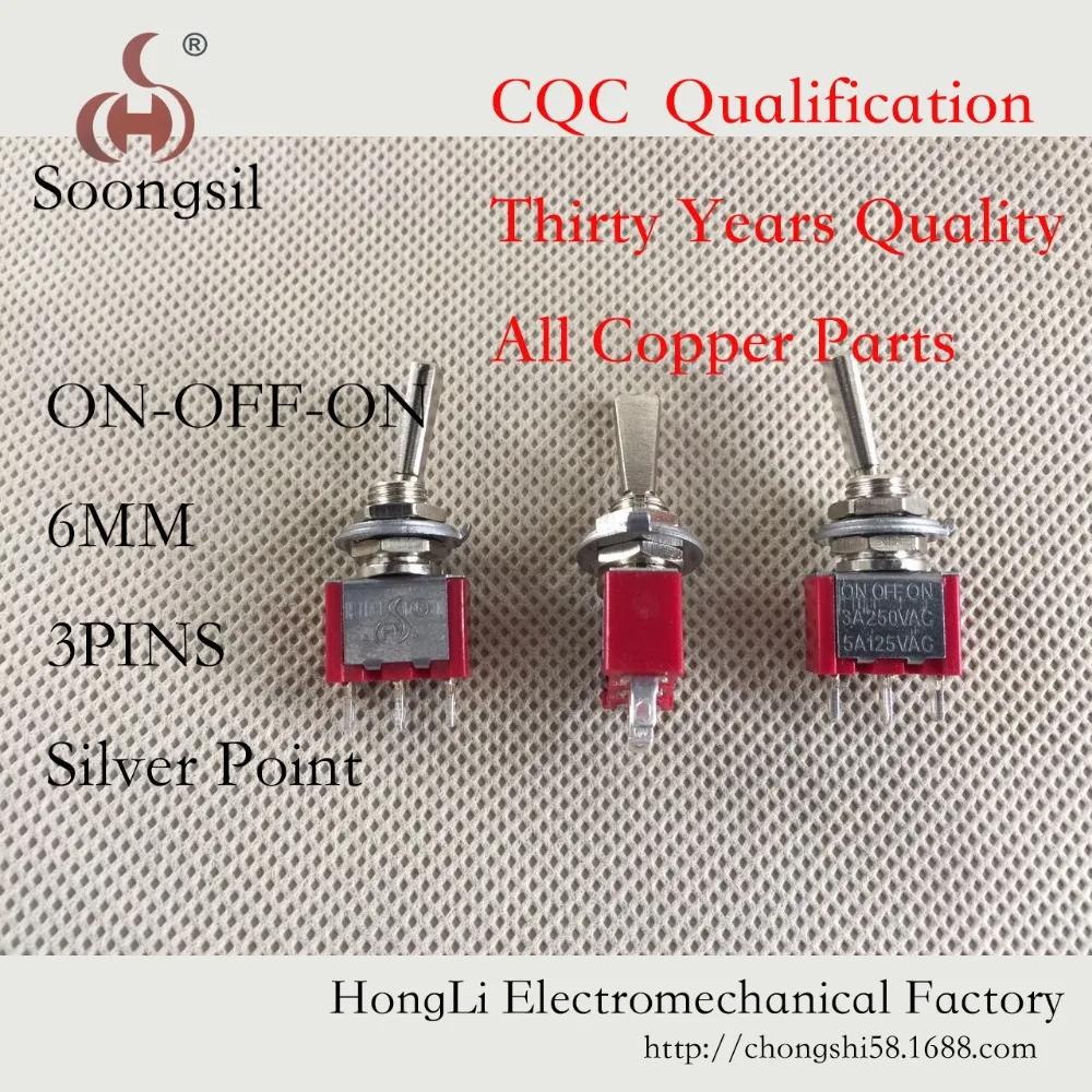 Светильник переключатель плоская ручка SPDT 3 Pin ВКЛ-ВЫКЛ-на 3 позиции CQC по ограничению на использование опасных материалов в производстве серебро контактный передатчика радиоуправляемой модели к компьютеру переменного тока 6A125V Новый тумблер