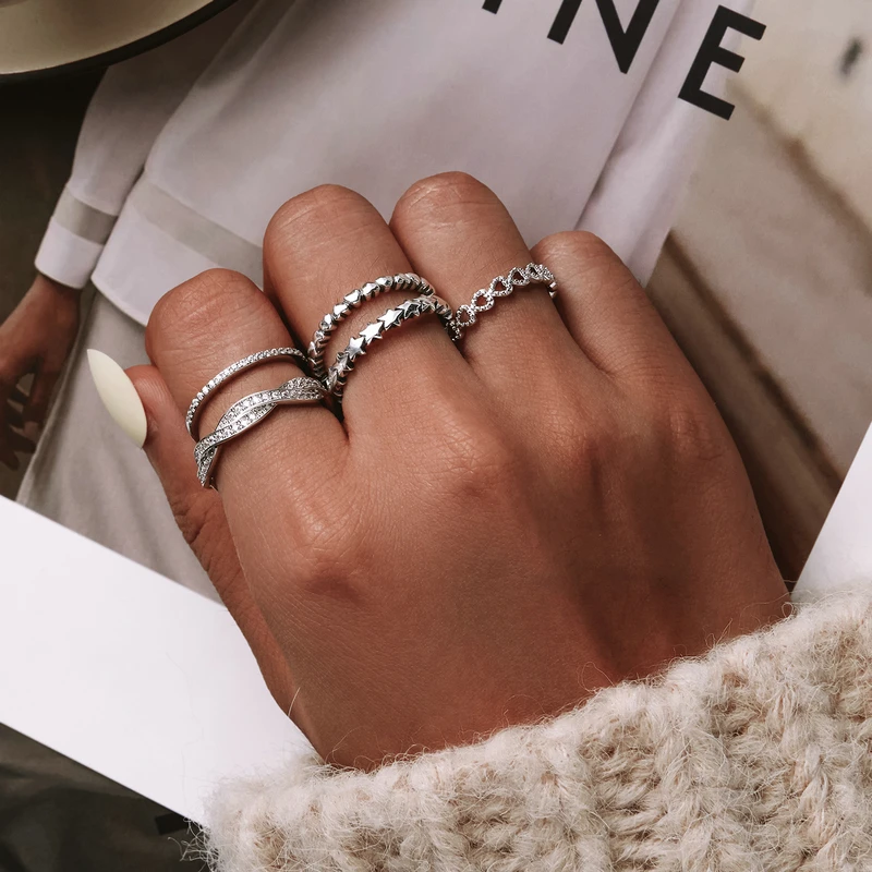 Женское кольцо WOSTU, Stackable, из серебра 925 пробы, 6 стилей, дл...