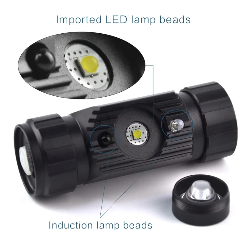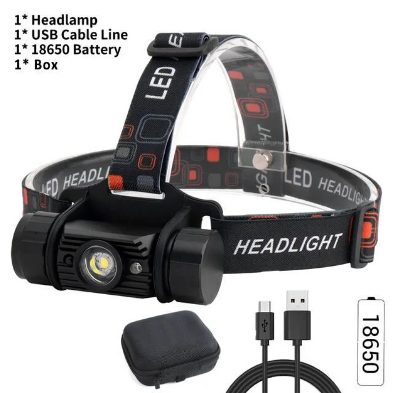Налобный фонарь BORUiT с ИК-датчиком, миниатсветильник ный с зарядкой от USB, светильник, для кемпинга, с аккумулятором 18650