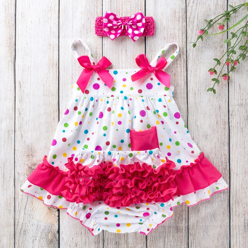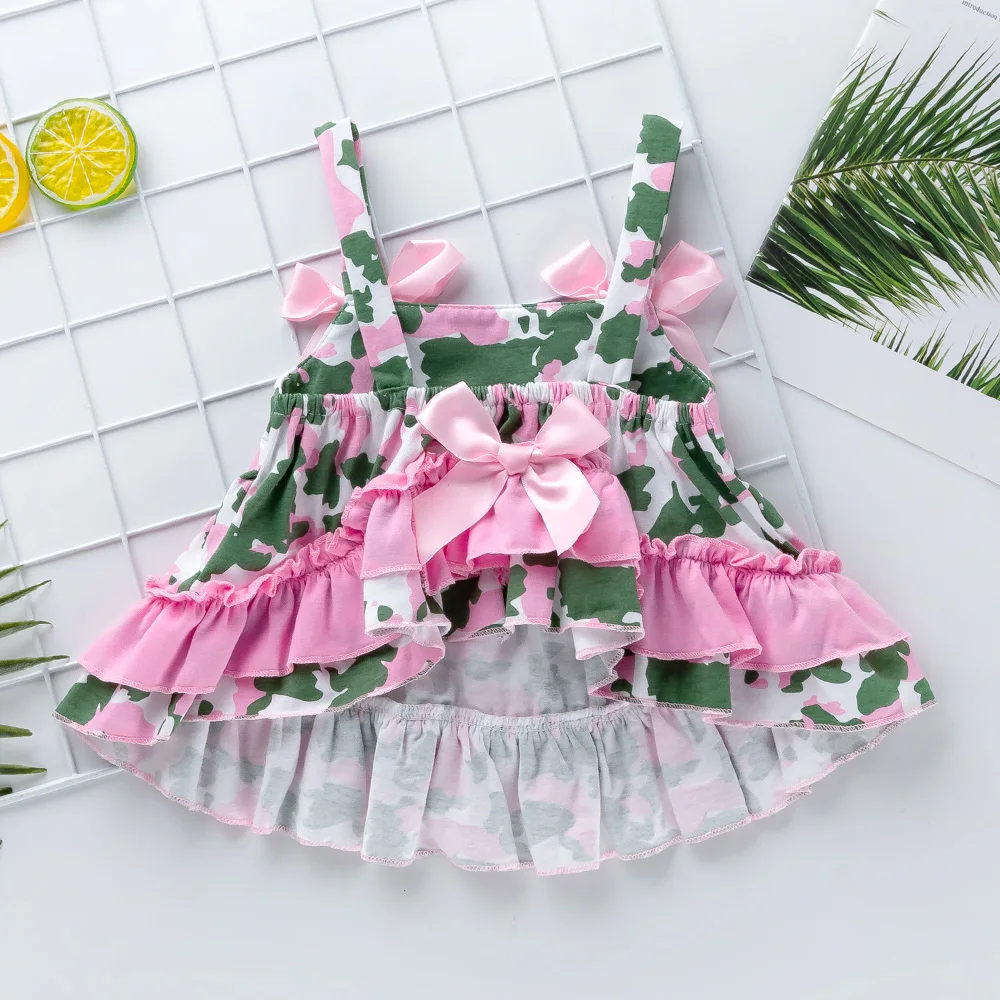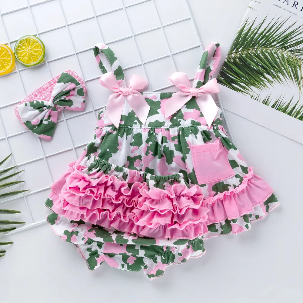 Камуфляжный комплект для девочек, Свободный Топ в горошек, подходящий комплект одежды с оборками, наборы повязок на голову