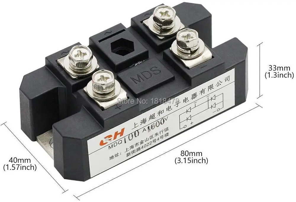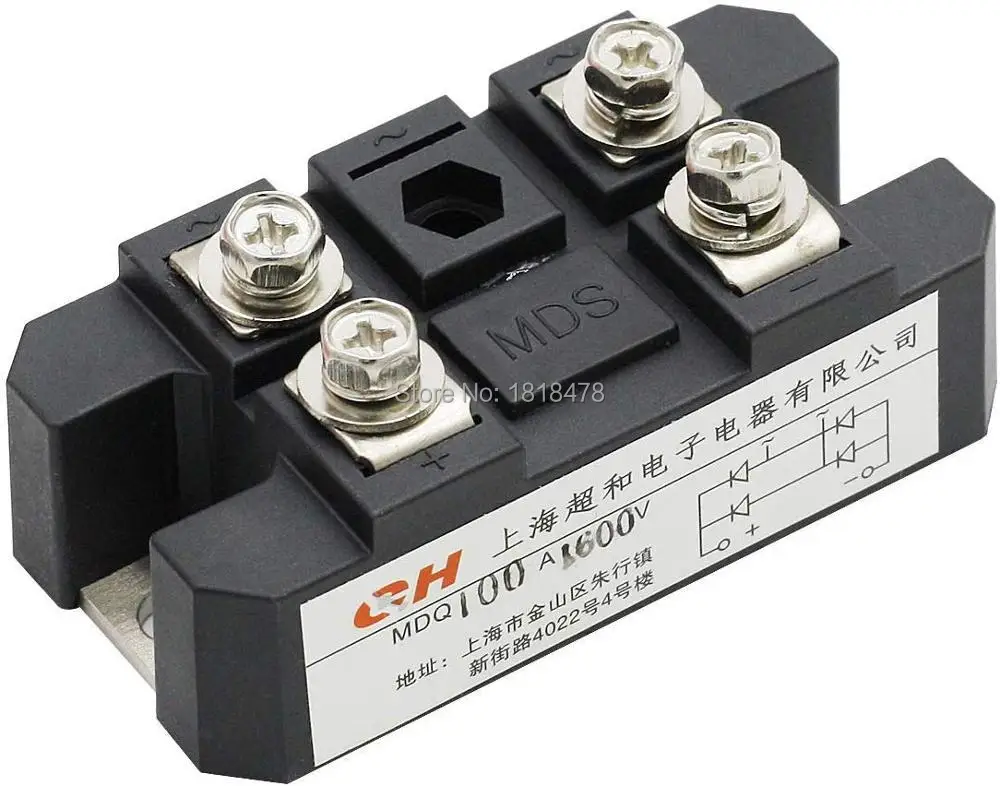 Модуль силового диода MDQ-100A предназначен для однофазного полного выпрямления волны, к которому подключены четыре диода в однофазной конфигурации моста.
