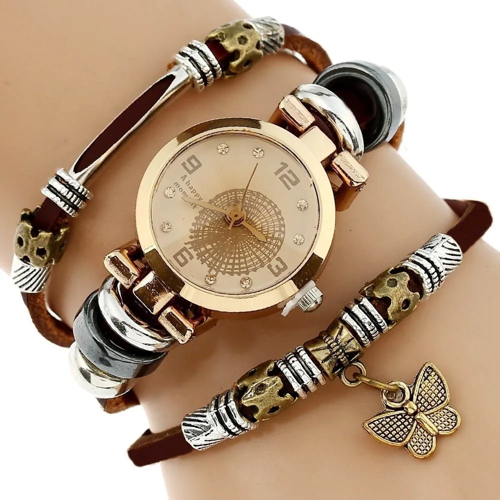 Женские наручные часы Gnova Platinum Top из натуральной кожи, с тройным браслетом и бабочкой, модель A581