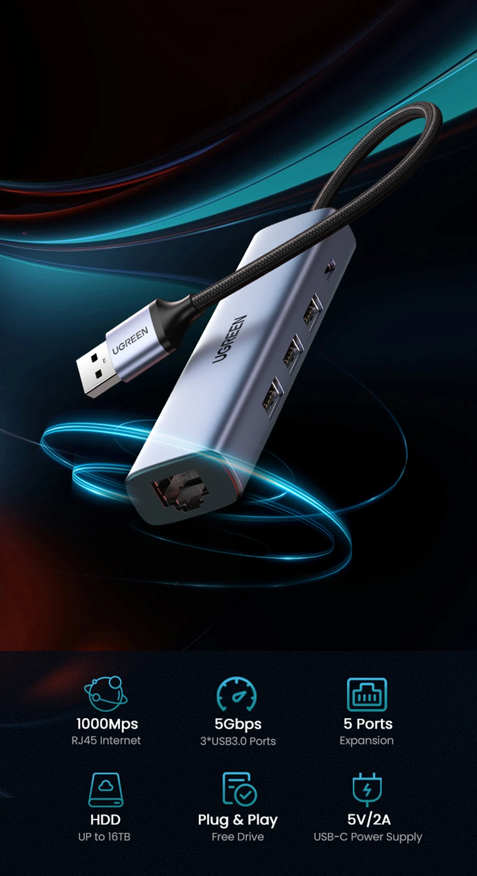 UGREEN USB Ethernet USB3.0 Lan 1000 Мбит с Ethernet-адаптер USB RJ45 для ноутбука Xiaomi Mi Box S Ethernet HUB сетевая карта