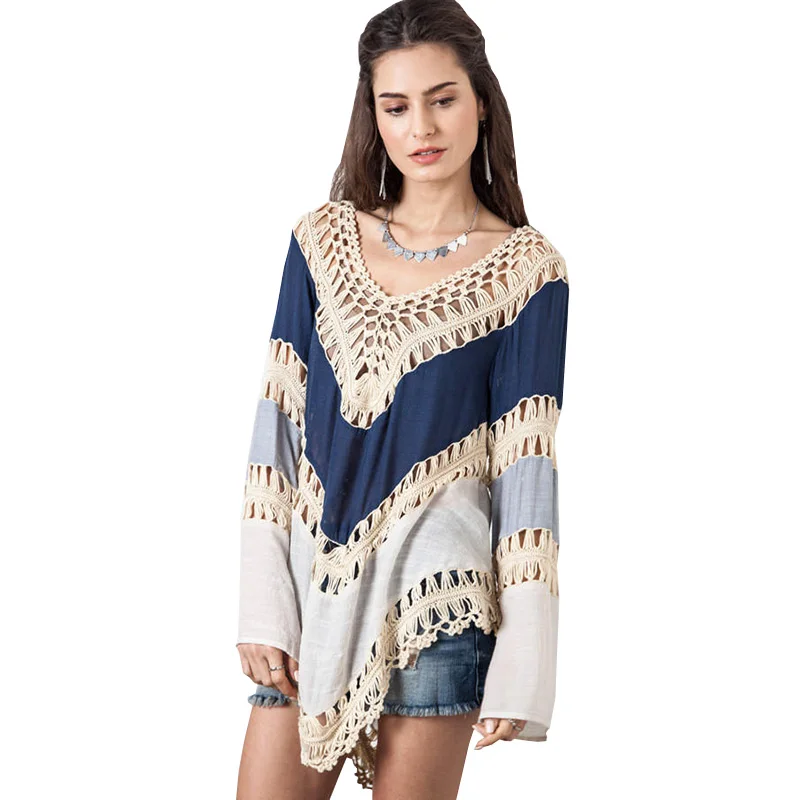 Хиппи Блузка кимоно Boho крючком Для женщин блузки 2021 Blusa Feminina рубашка с длинными рукавами Blusas Винтаж сексуальные топы размера плюс