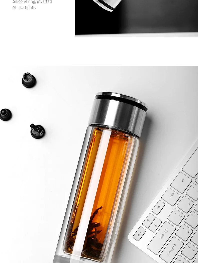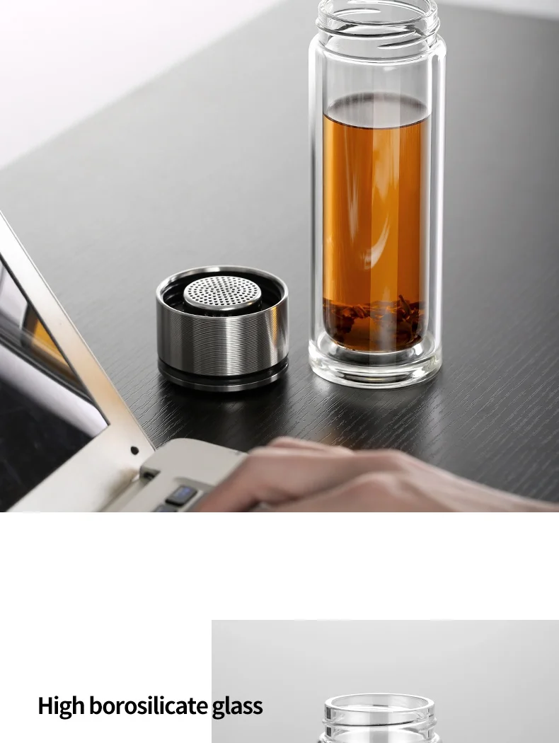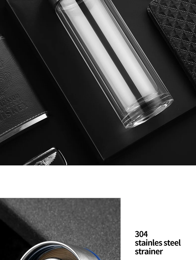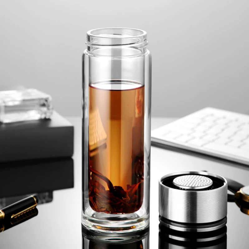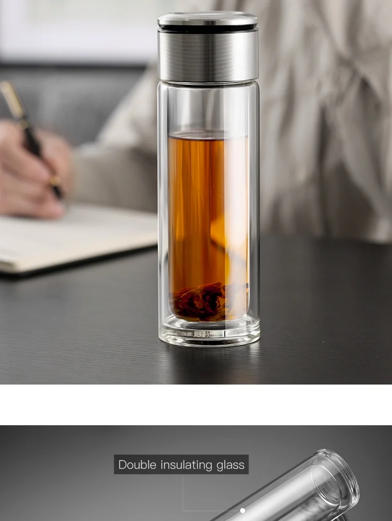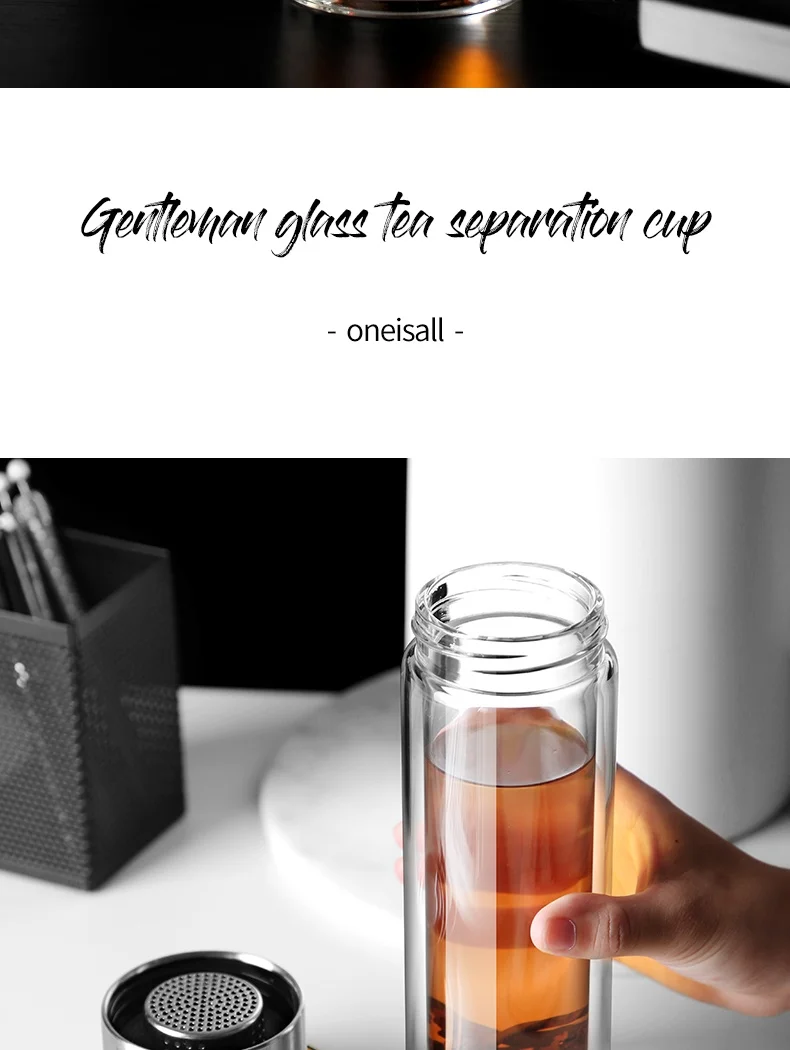Стеклянная бутылка для воды ONEISALL, 320 мл, заварник для чая из нержавеющей стали, герметичная бутылка для воды с фруктами для автомобиля, дома и офиса