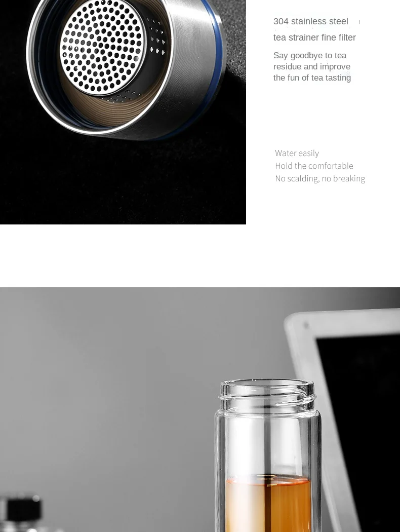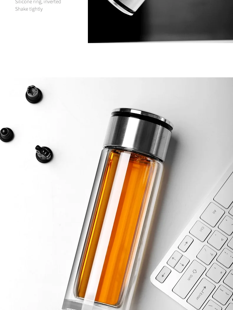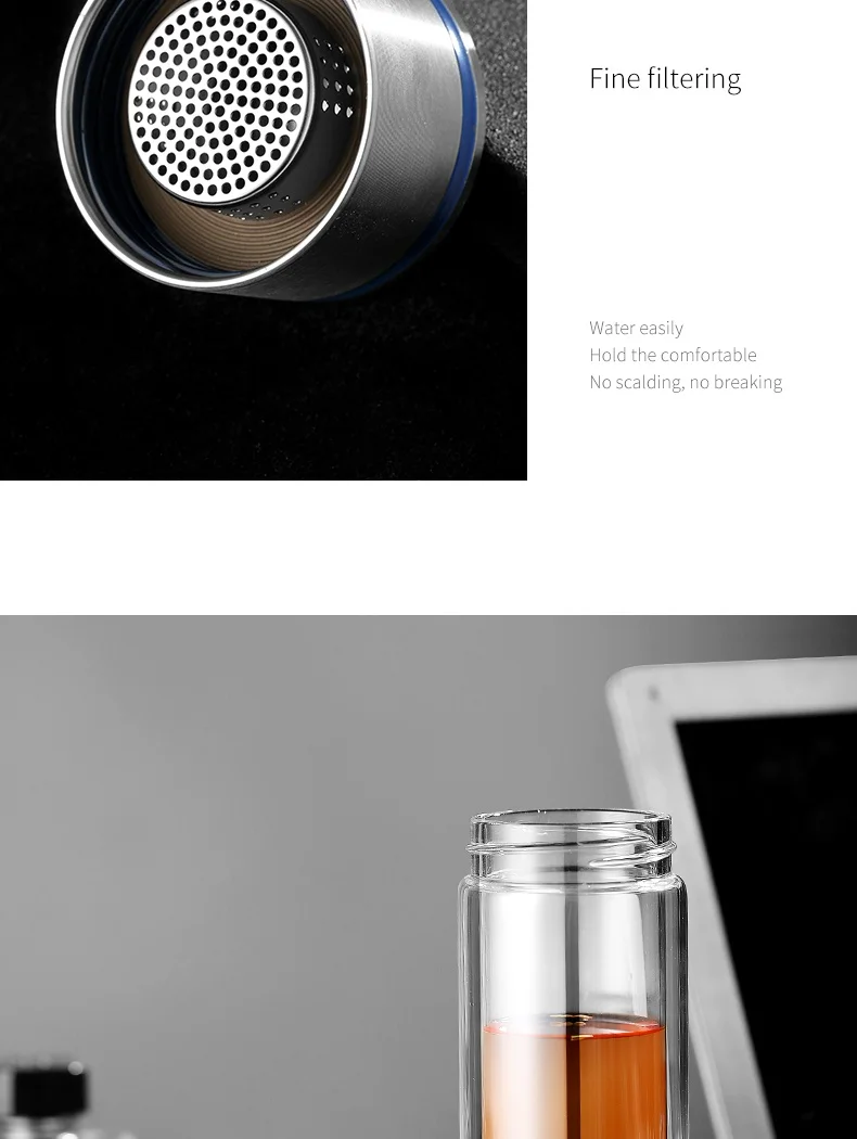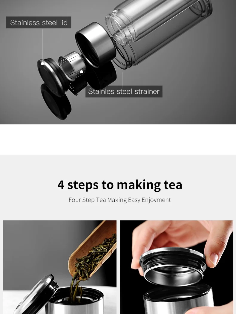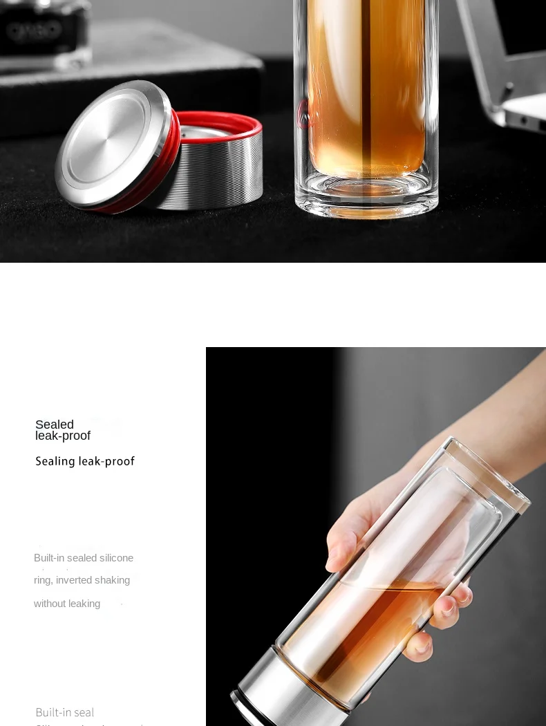 Стеклянная бутылка для воды ONEISALL, 320 мл, заварник для чая из нержавеющей стали, герметичная бутылка для воды с фруктами для автомобиля, дома и офиса