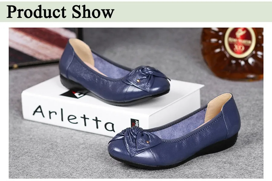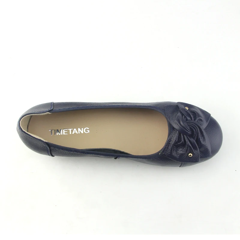 Балетки женские из натуральной кожи, с бантиком, большого размера