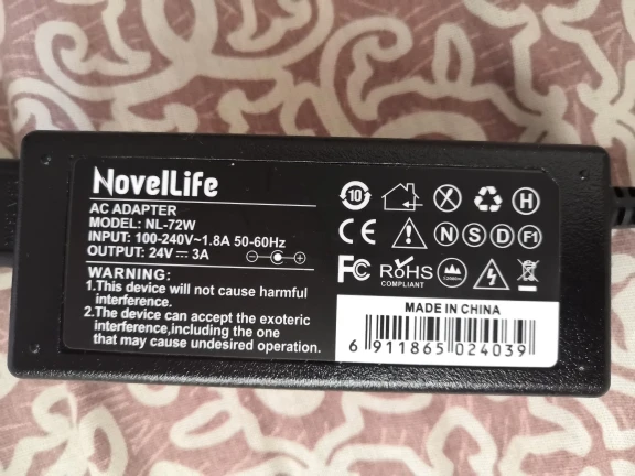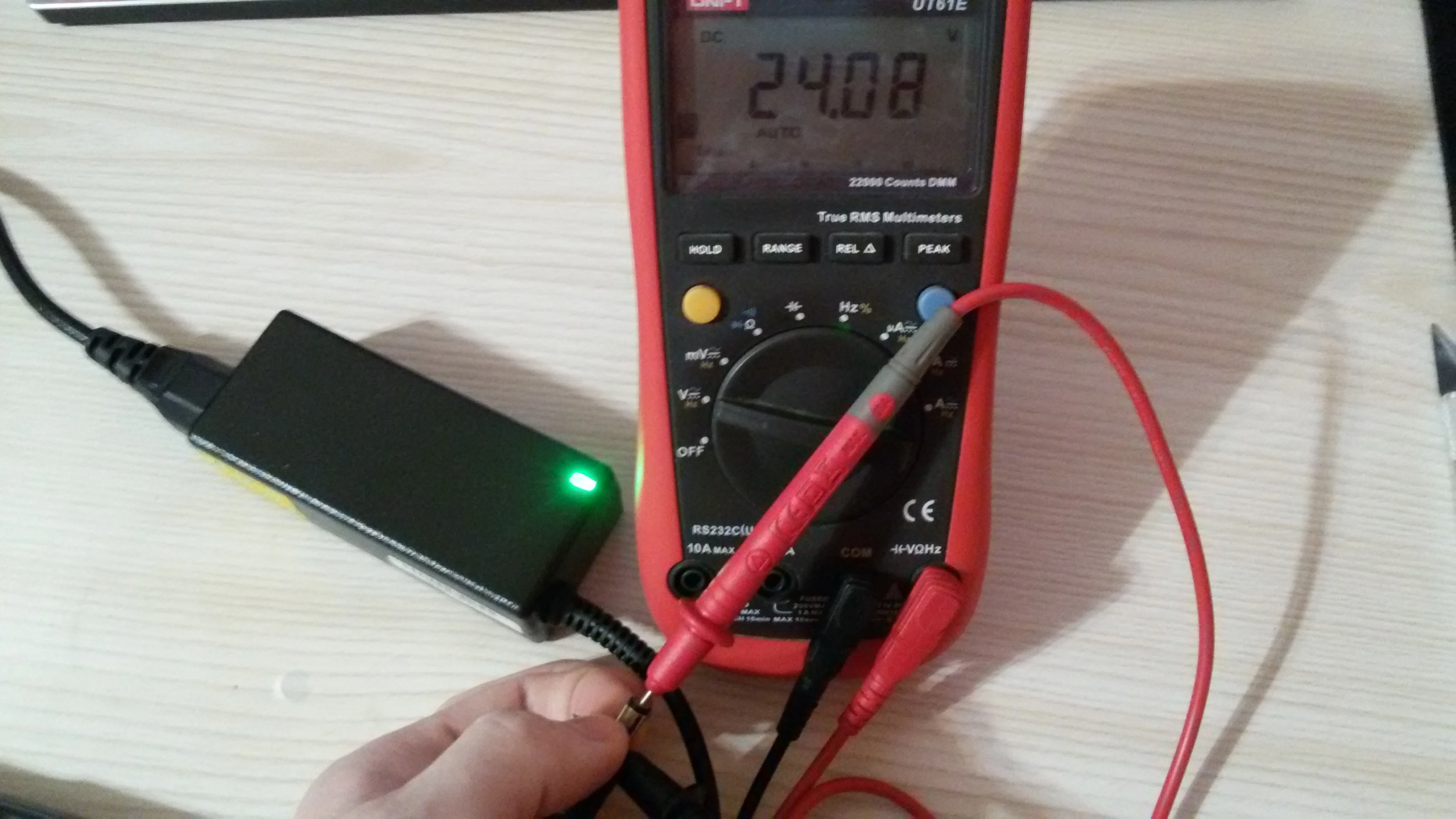 Сегодня я получил источник питания, и он работает, но, к сожалению, штепсельная вилка европейского стандарта не такая, как показано на фотографиях, поэтому мне пришлось купить штепсельный адаптер для его использования.
